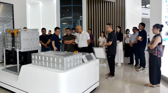 在國鴻氫能副總經理、氫能研究院副院長燕希強博士的陪同下,與會嘉賓首先參觀了國鴻氫能廣州基地的展廳與生產線,了解公司智能制造、氫能技術開發等情況。
