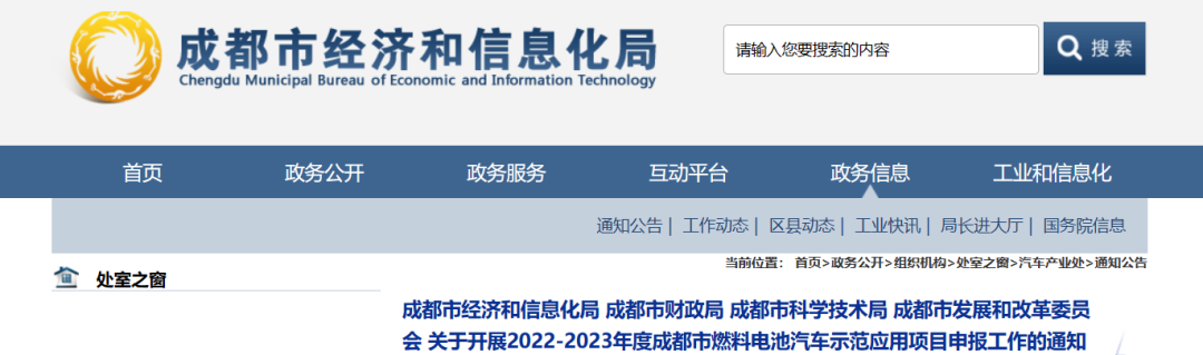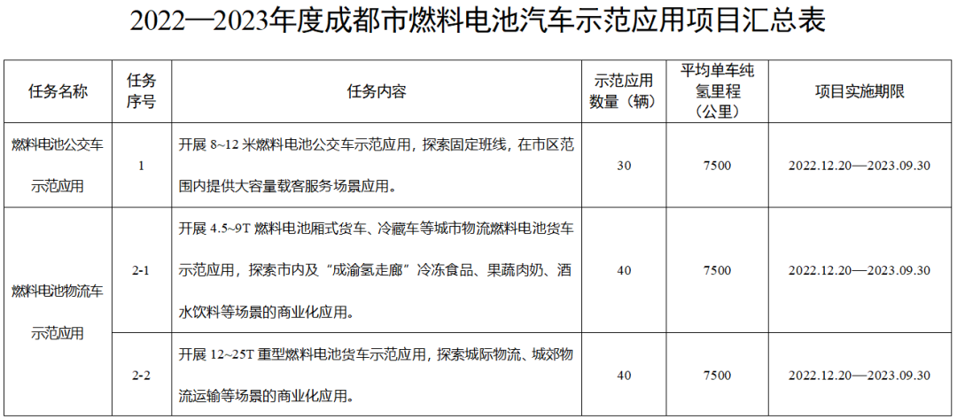 12月22日,成都市經信局發布了關于開展2022-2023年度成都市燃料電池汽車示范應用項目申報工作的通知。
