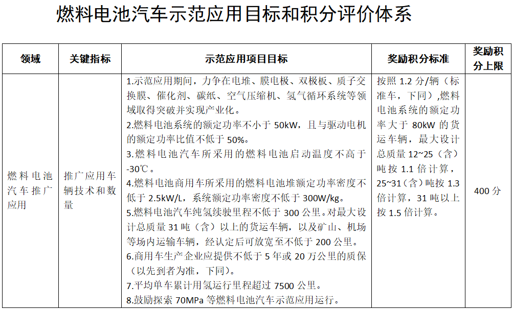 針對此次燃料電池汽車示范應用范圍的燃料電池汽車新上牌車輛,參照國家獎勵積分標準給予市本級車輛示范應用獎勵。