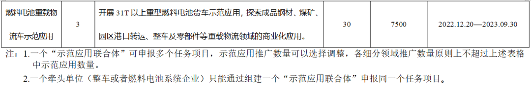 支持有關企業在本市開展燃料電池汽車示范應用,探索合理商業模式,帶動燃料電池汽車產業鏈加快發展。“示范應用聯合體”在項目實施期間,完成對應車型的燃料電池汽車推廣任務(見附件1),同時車輛需滿足以下要求: