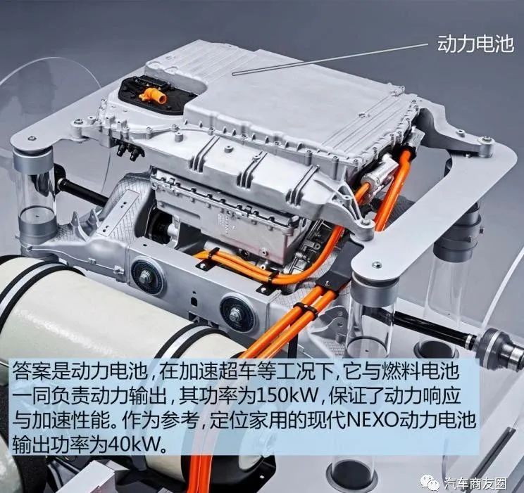 看到這,相信“眼尖”的朋友發(fā)現(xiàn)了一個(gè)細(xì)節(jié),寶馬iX5 Hydrogen的氫燃料電池系統(tǒng)功率為125kW,電驅(qū)單元最大驅(qū)動(dòng)功率為275kW,中間的差值怎么解決?