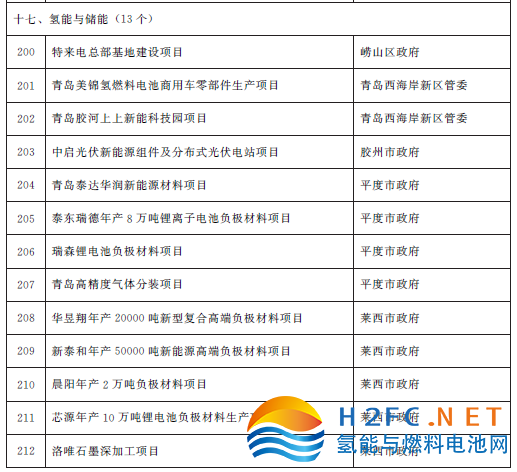 近日,青島市人民政府公布2023年青島市重點項目名單。其中,重點建設類項目363個,重點準備類項目157個,13個氫能與儲能項目。