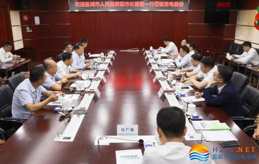 才延福首先對(duì)唐敬一行的到來(lái)表示熱烈歡迎,感謝鹽城市對(duì)吉電股份的支持和幫助。詳細(xì)介紹了吉電股份的發(fā)展歷程、產(chǎn)業(yè)布局和未來(lái)發(fā)展方向。才延福表示,近年來(lái),公司圍繞“雙碳”目標(biāo),聚焦新能源、綜合智慧能源、氫能、儲(chǔ)能四條發(fā)展主線,盯緊能源行業(yè)前沿技術(shù),堅(jiān)持創(chuàng)新驅(qū)動(dòng),全力打造氫基綠色能源、“零碳工場(chǎng)”等新賽道。希望以吉電大豐氫能產(chǎn)業(yè)鏈一體化項(xiàng)目為依托,充分發(fā)揮各自優(yōu)勢(shì),在鹽城發(fā)展氫能制儲(chǔ)運(yùn)加用全產(chǎn)業(yè)鏈,共同建設(shè)氫基綠色能源生態(tài)圈,合力打造以長(zhǎng)三角為中心的地區(qū)綠色能源供給體系,助力鹽城綠色低碳發(fā)展示范區(qū)和低(零)碳產(chǎn)業(yè)園建設(shè),為早日實(shí)現(xiàn)“雙碳”目標(biāo)貢獻(xiàn)吉電力量。