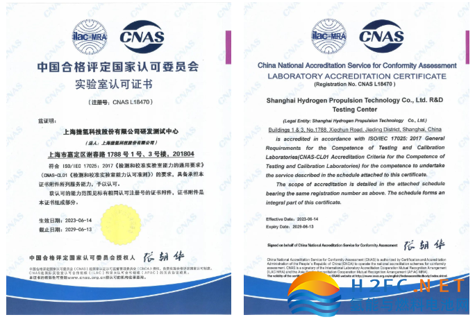 近日,捷氫科技研發測試中心通過中國合格評定國家認可委員會(CNAS)批準,獲得實驗室認可證書,標志著該測試中心躋身國家認可實驗室行列,具備國家及國際認可的檢測能力和管理水平。這是捷氫科技在體系化建設方面又一重大提升,對保障產品品質、提升核心競爭力、增強客戶對產品認可度具有重要意義。