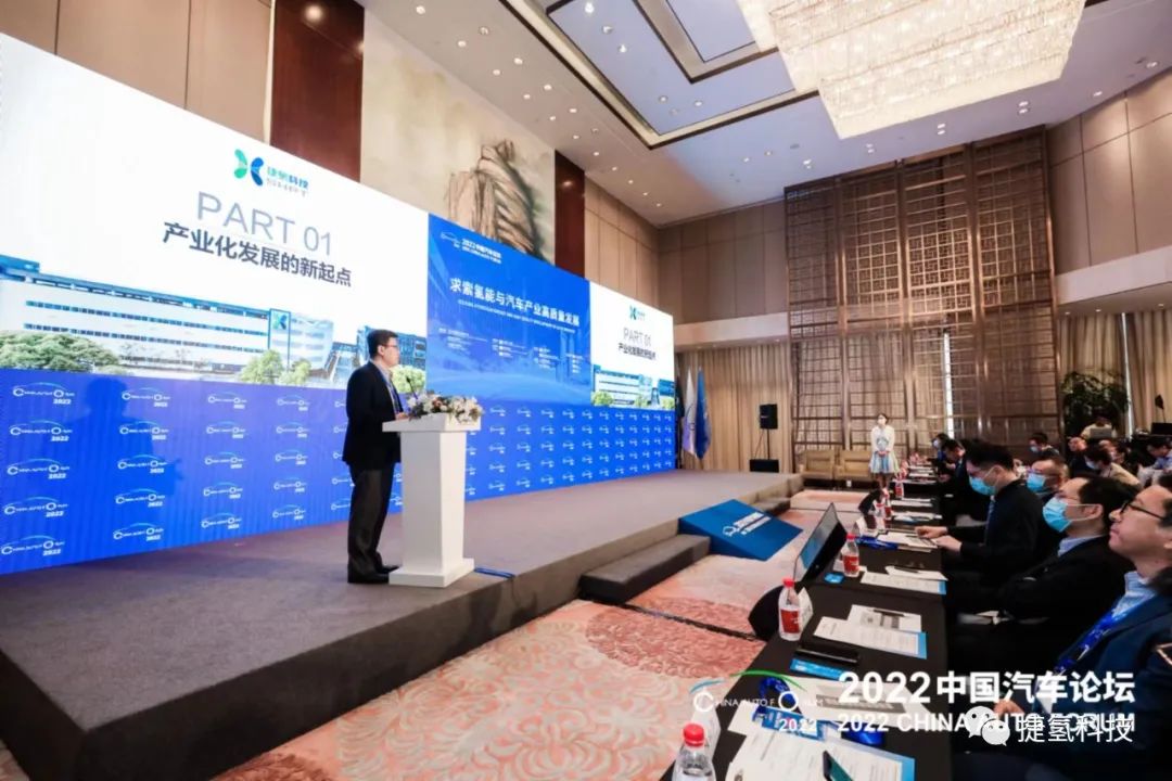 其中,一場圍繞“求索氫能與汽車產業高質量發展”的話題探討在此展開。作為中國汽車論壇的主題論壇之一,氫能行業的精英們齊聚于此,共話行業新形勢,共商發展新舉措。在論壇上,捷氫科技副總經理侯中軍博士發表主題演講,為現場嘉賓帶來了捷氫科技對于燃料電池產業化發展的新思考。