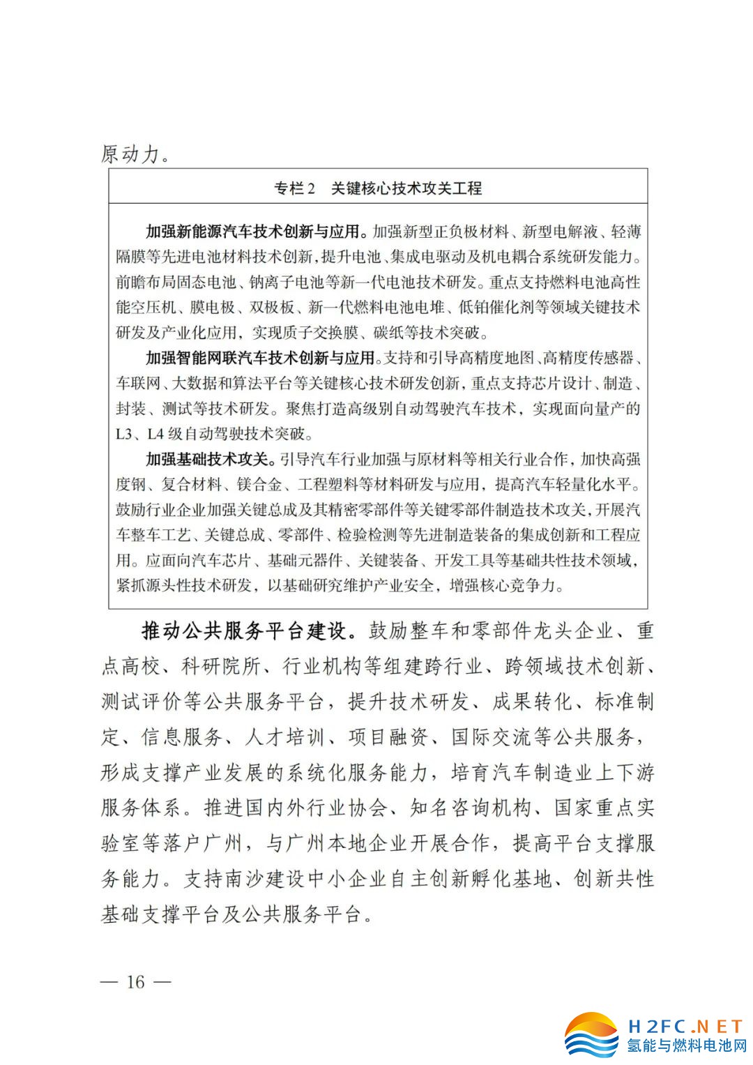 加速廣佛全域聯動,出臺燃料電池汽車聯動示范應用政策,共同推進國家燃料電池汽車示范城市群建設。打造燃料電池汽車整車生產平臺、燃料電池及相關零部件產業化生產平臺、氫能和燃料電池技術研發平臺等,加快燃料電池汽車商業化應用,打造具有國際競爭力的氫能和燃料電池汽車產業集群。鼓勵開展液態儲氫、有機質儲氫、固態儲氫等儲氫新工藝、新技術試點,助力燃料電池汽車發展。引導建設綜合能源補給站,探索創新運營模式,實現油、氣、電、氫一體化供給服務。適度超前布局加氫站網絡和智能網聯路側基礎設施建設,滿足新技術應用推廣需求。