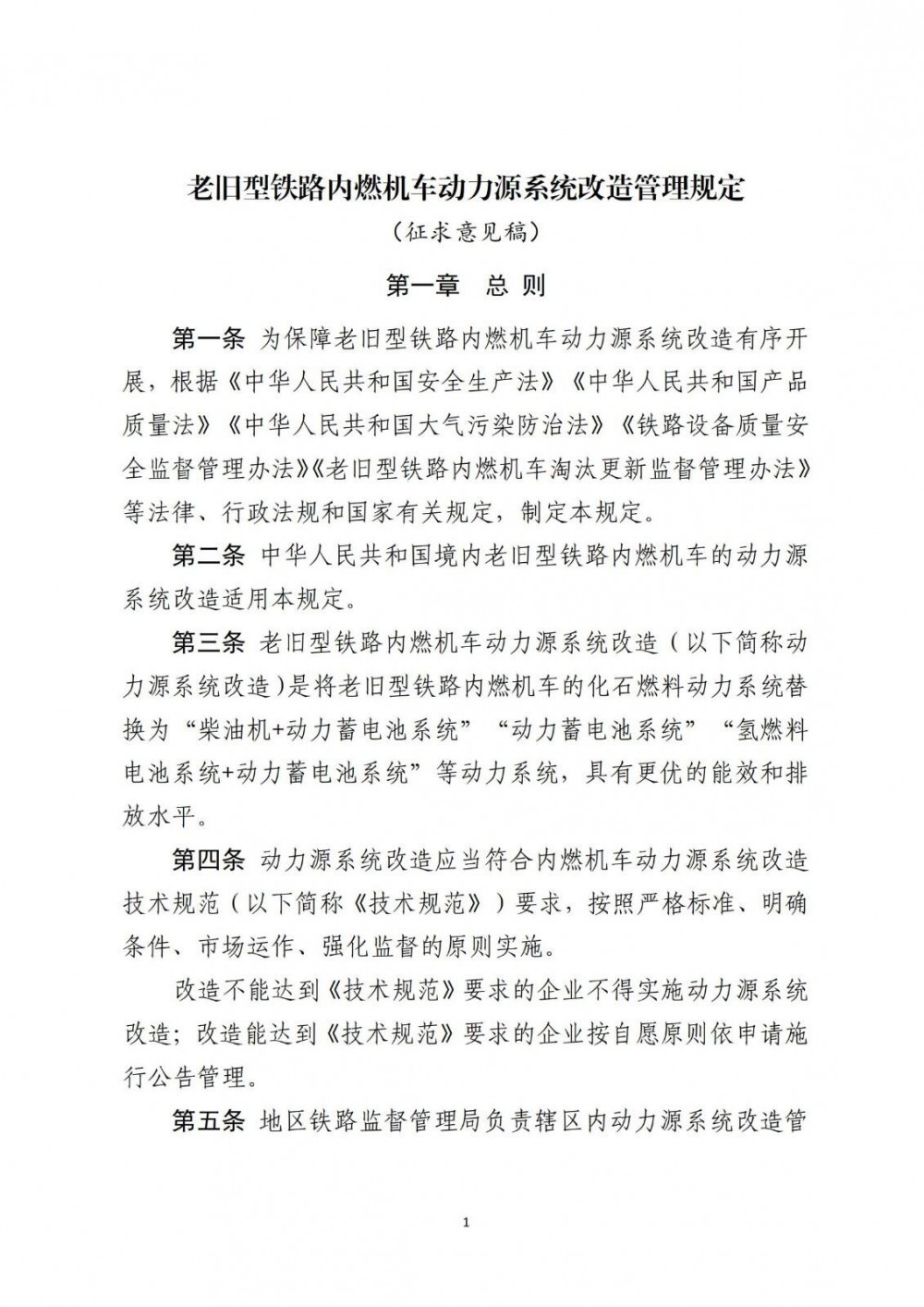 近日,國家鐵路局發布關于《老舊型鐵路內燃機車動力源系統改造管理規定(征求意見稿)》公開征求意見的通知。