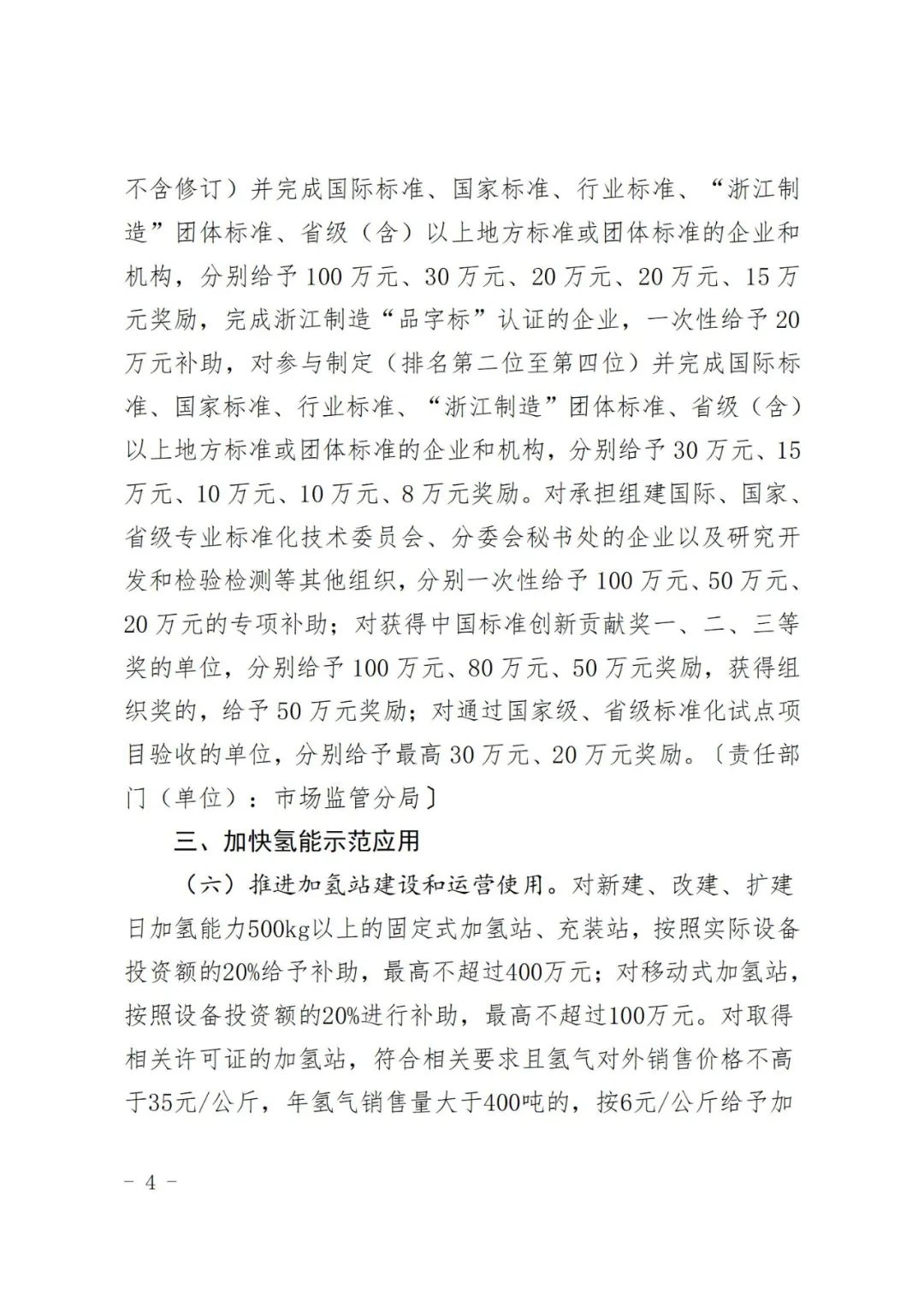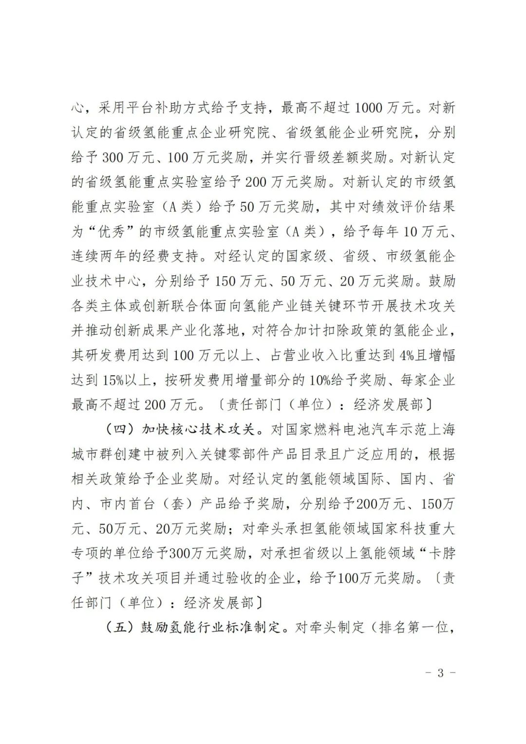 面向氫能全產(chǎn)業(yè)鏈,培育一批專精特新企業(yè)、“隱形冠軍”企業(yè)和“單項(xiàng)冠軍”企業(yè);面向氫能裝備檢測(cè)、車輛維護(hù)、安全培訓(xùn)等,培育一批服務(wù)類企業(yè)。對(duì)新認(rèn)定的氫能領(lǐng)域“單項(xiàng)冠軍”企業(yè)、專精特新“小巨人”企業(yè)和“隱形冠軍”企業(yè)分別給予300萬(wàn)元、150萬(wàn)元和100萬(wàn)元獎(jiǎng)勵(lì)。