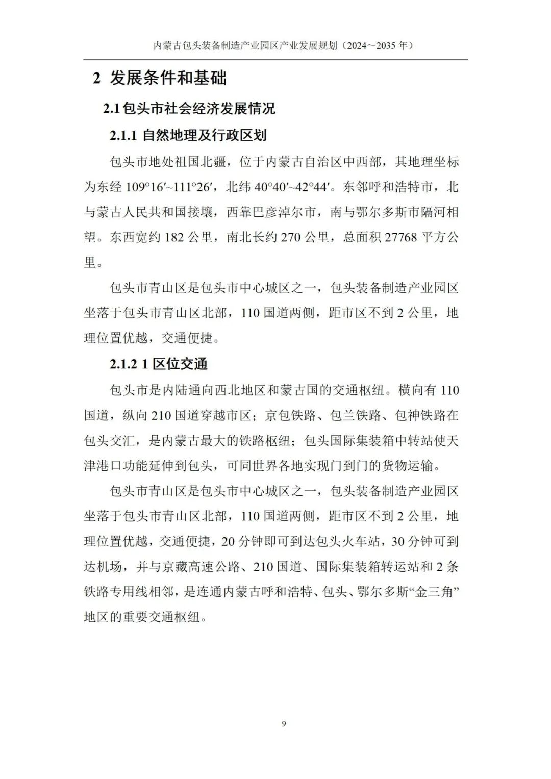 關于《包頭裝備制造產業園區產業發展規劃(2024~2035年)》公開征求意見的公告
