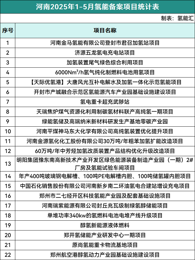 河南氫能備案項目22個。
