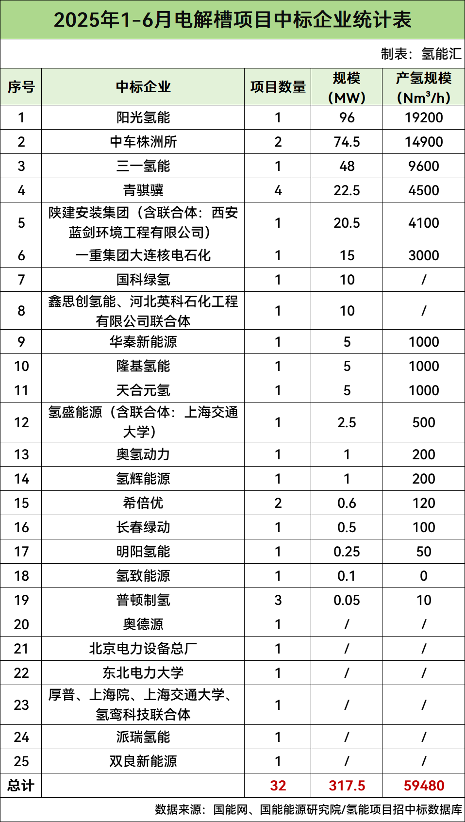 317.5MW!陽光氫能、中車株洲所、三一氫能居前三。