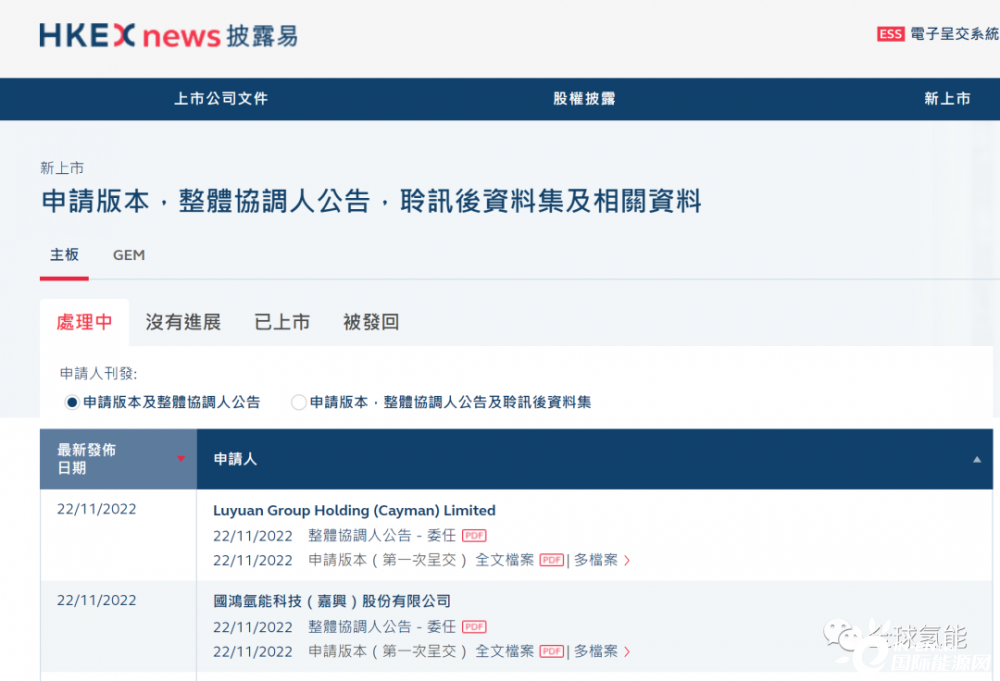 2022年11月22日,跟據港交所文件,國鴻氫能科技(嘉興)股份有限公司(簡稱“國鴻氫能”)遞表港交所主板,華泰國際為獨家保薦人。