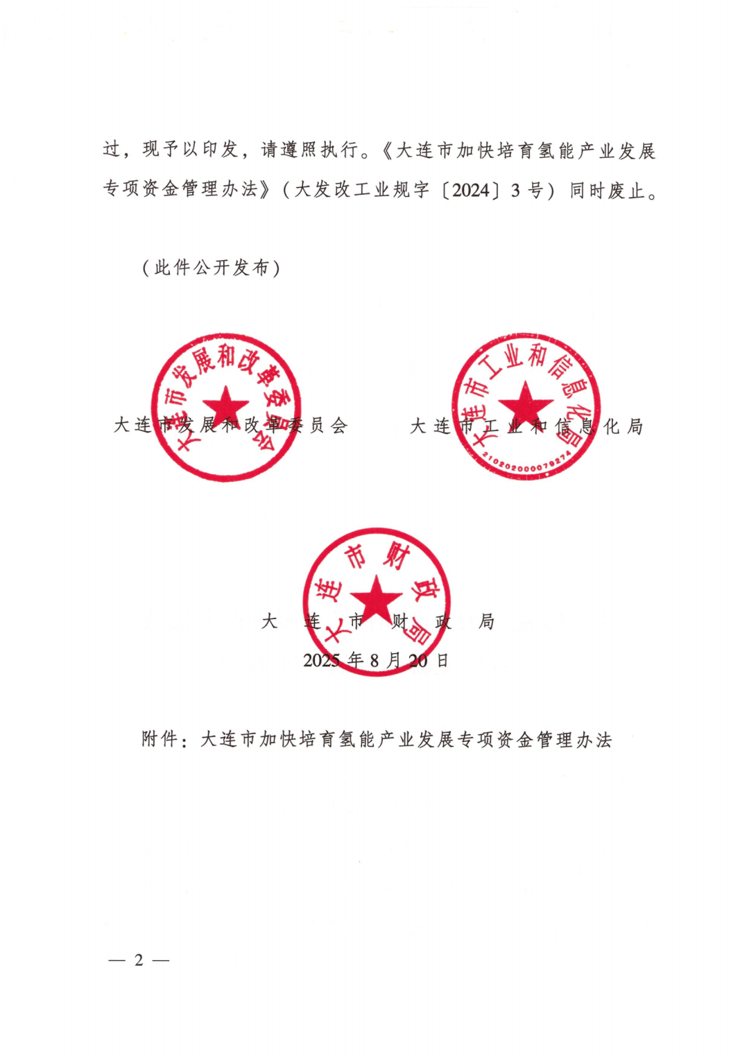 8月20日,大連市發展和改革委員會關于印發《大連市加快培育氫能產業發展專項資金管理辦法》的通知。