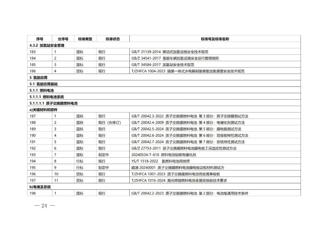 第三層級(jí)氫能應(yīng)用標(biāo)準(zhǔn)是氫能供應(yīng)的下游環(huán)節(jié),面向應(yīng)用具體需求,包括氫能應(yīng)用基礎(chǔ)、交通、儲(chǔ)能、發(fā)電、工業(yè)及其他應(yīng)用領(lǐng)域。其中氫能應(yīng)用基礎(chǔ)包括燃料電池、氫內(nèi)燃機(jī)、氫氣鍋爐、氫燃?xì)廨啓C(jī)等,是實(shí)現(xiàn)氫能在多領(lǐng)域終端應(yīng)用的裝備基礎(chǔ)。