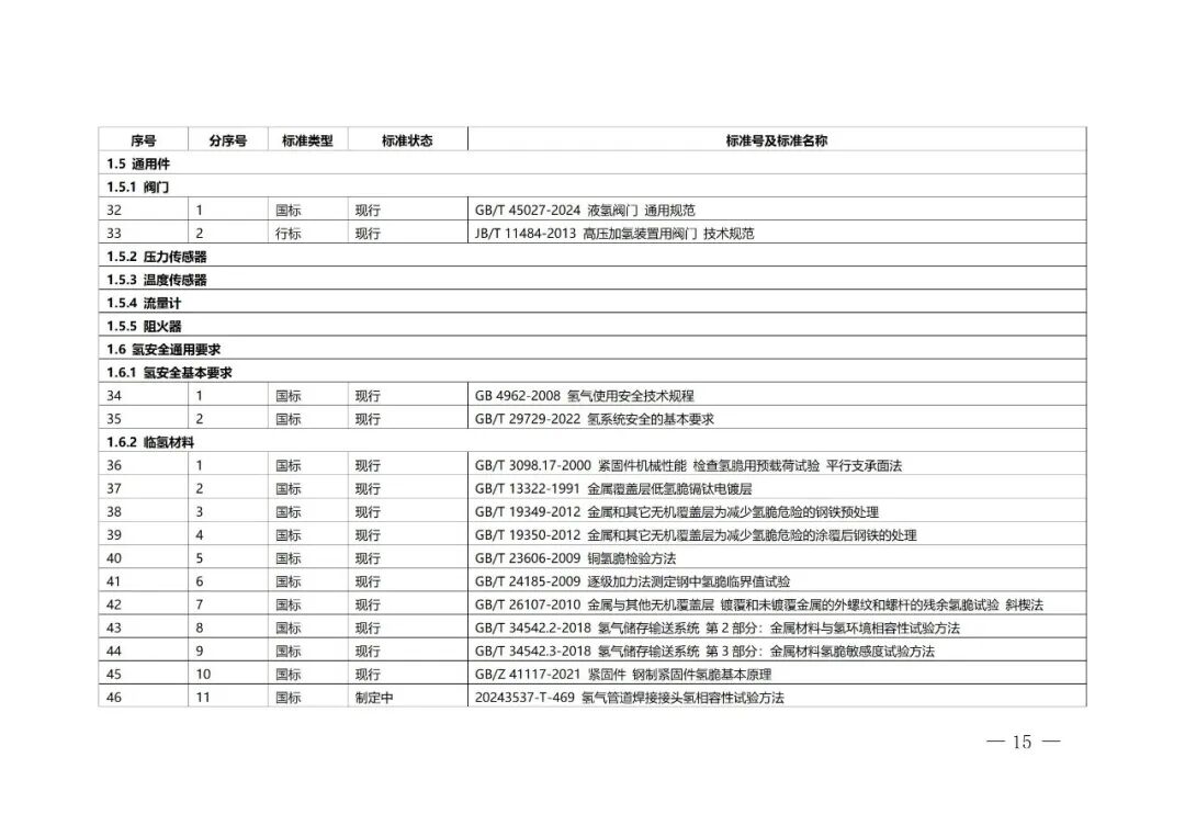 第一層級(jí)基礎(chǔ)與安全標(biāo)準(zhǔn)是氫能供應(yīng)與氫能應(yīng)用標(biāo)準(zhǔn)的基礎(chǔ)支撐,規(guī)定了本專業(yè)領(lǐng)域具有廣泛適用范圍或通用條款的標(biāo)準(zhǔn)。主要包括:術(shù)語、圖形符號(hào)、氫能綜合評(píng)價(jià)、氫品質(zhì)、通用件、氫安全通用要求等。