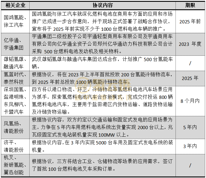2、應用領域增加。2022年底的項目涉及到發動機、汽車、氫發電、冷鏈等多個領域,對比2021年底以汽車示范項目為主顯得場景更加豐富,顯示氫能向各領域的滲透正在加速。