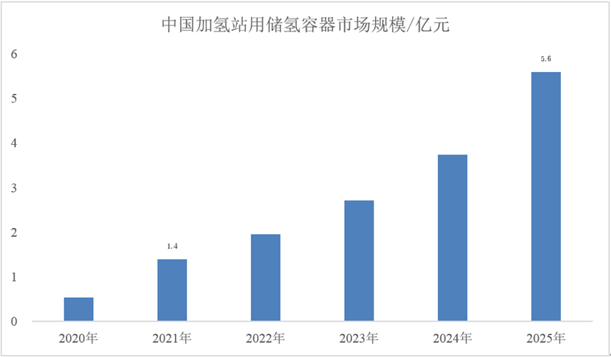2020-2025年中國(guó)加氫站用儲(chǔ)氫容器市場(chǎng)需求及預(yù)測(cè)(單位:億元)
