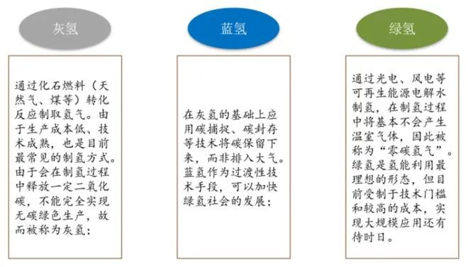 根據生產過程中碳排放量的強度,可將氫氣分為化石能源直接制取的“灰氫”、化石能源+二氧化碳捕集與封存制取的“藍氫”和通過可再生能源、核能電解水制取而成的“綠氫”。