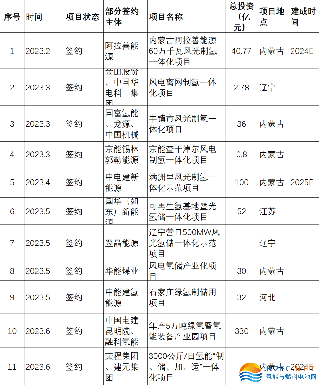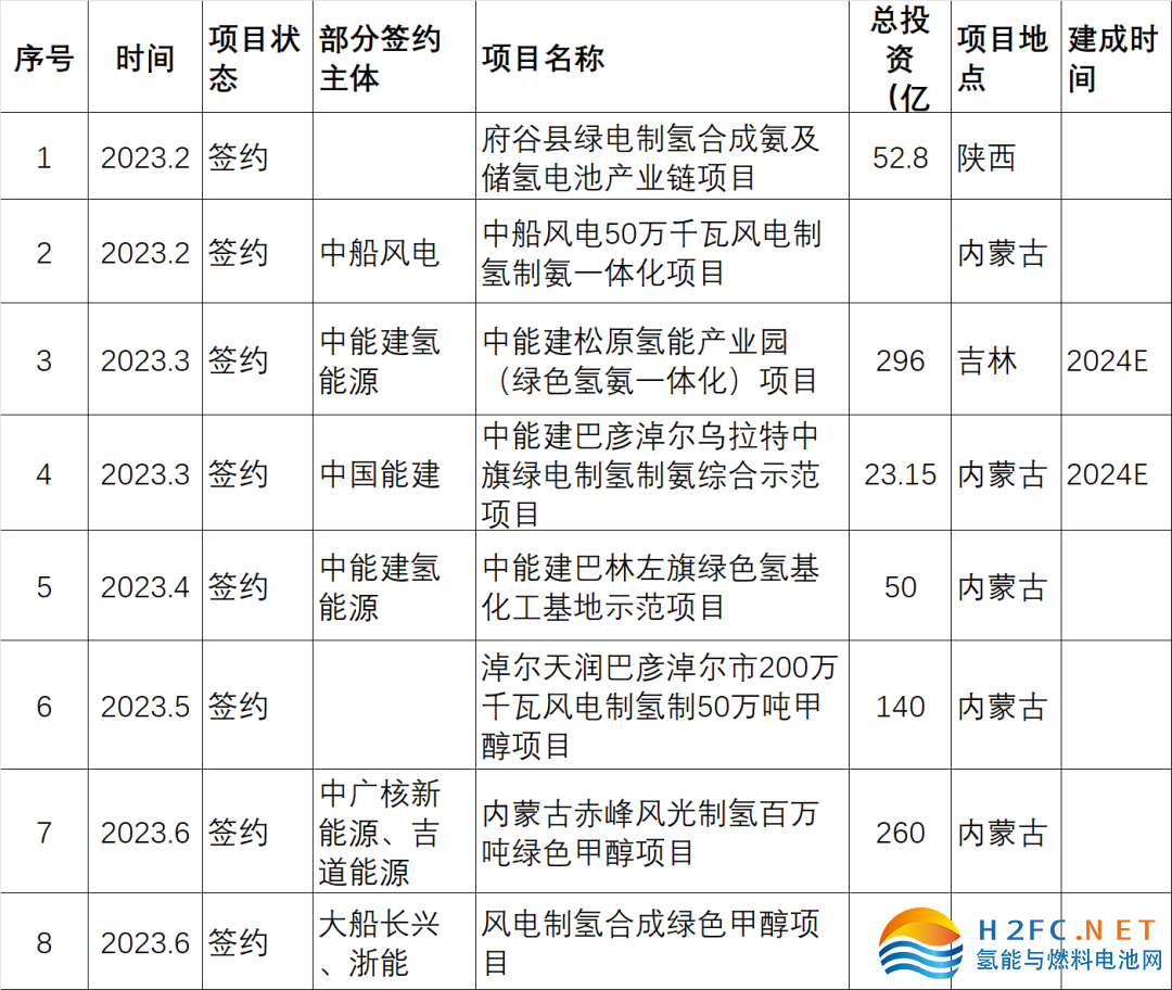2023上半年新簽綠氫合成氨及甲醇項(xiàng)目